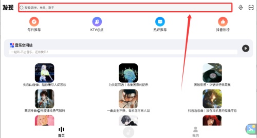 1、在搜索栏中点击放大镜图标,输入歌曲名或歌手名即可查找并在线播放。