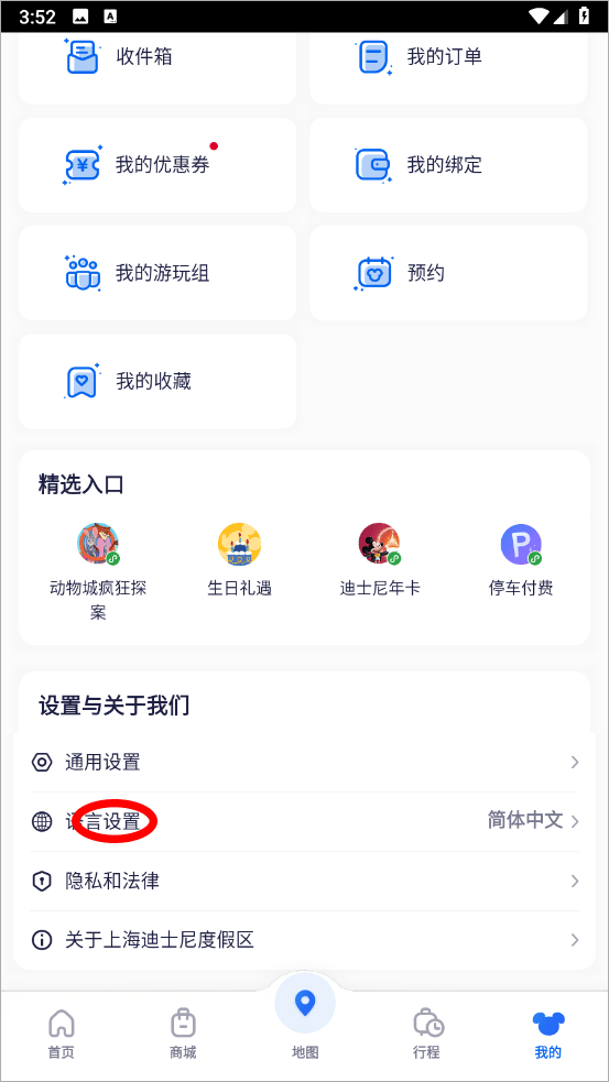 2、进入我的页面点击语言设置