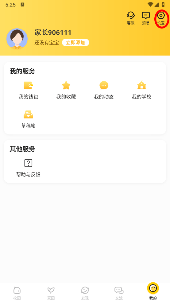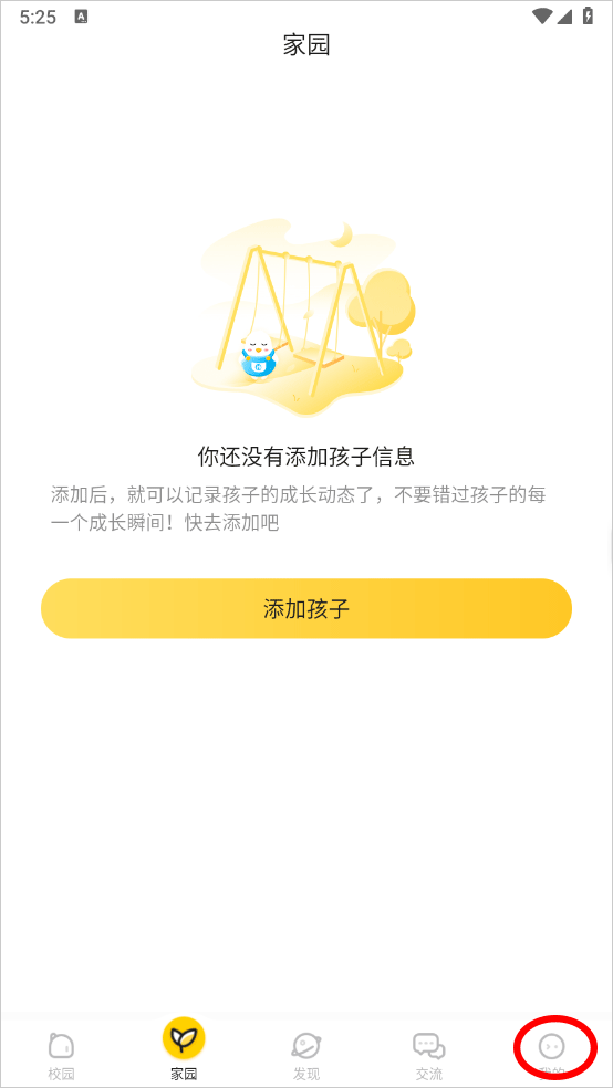 1、打开软件进入首页绑定孩子及学校点击下方我的栏目