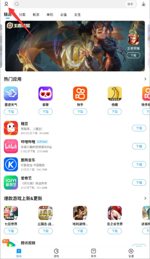 2、进入主页面后,在屏幕左上角寻找并点击菜单图标或用户头像以展开侧边栏。