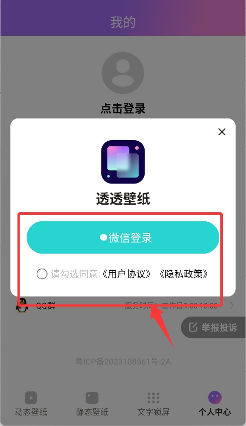 4、勾选同意用户服务协议后,选择“微信登录”方式,授权后即可快速完成登录。