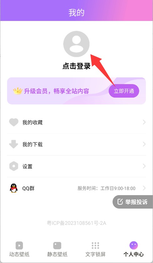 3、进入界面后在个人中心页面上方点击“登录”按钮,进入账号验证界面。
