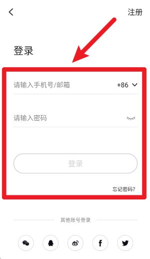 1、打开应用后进入登录界面,在此处输入绑定的手机号码或邮箱地址及密码,点击“登录”按钮即可进入主页面。