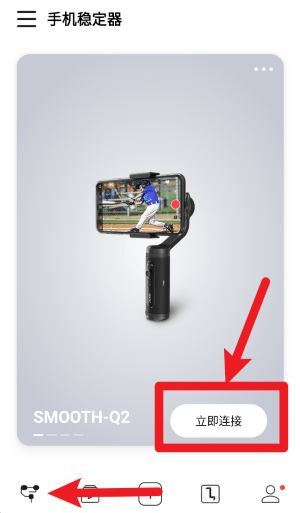 2、点击首页底部的稳定器图标后,选择您的设备型号,并点击“立即连接”按钮完成设备配对。
