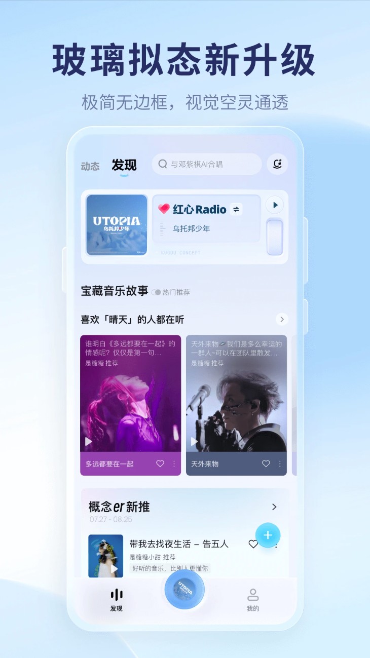 酷狗音乐概念版是专注于音乐发现,功能简洁,界面清新的音乐软件。同时,酷狗音乐也是国内用户规模,正版曲库领先的数字音乐平台。