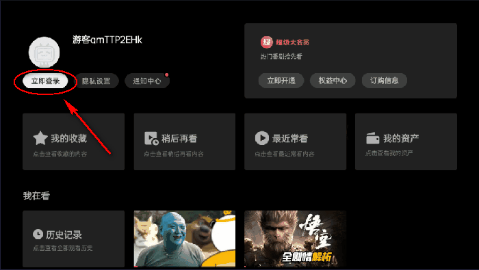 2、进入“个人中心”后,继续点击左上角的“立即登录”