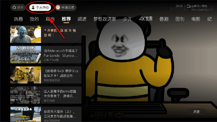 1、打开云视听小电视后,点击左上角的“个人中心”