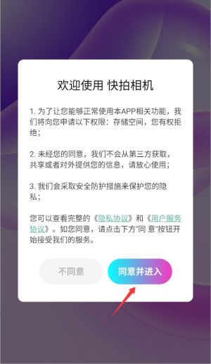 1、首次启动应用时,系统会显示用户协议和隐私政策,阅读后点击同意按钮进入主界面。