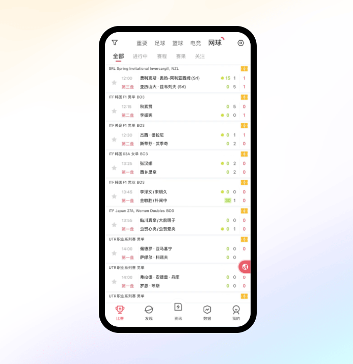 【足篮网电竞赛事】:覆盖全球3000+足球篮球网球等不同赛事,包含:欧冠杯、亚冠杯、中超、英超、西甲、德甲、意甲、法甲、日职联、韩K联、澳超、NBA、CBA、LOL、DOTA2等赛事,满足不同类型体育、电竞爱好者