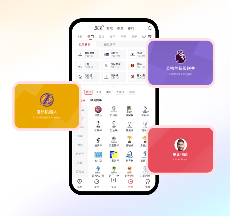 覆盖全球3000+足球篮球网球电竞不同赛事包含:欧洲杯、中超、英超、NBA等热门赛事满足不同类型体育爱好者