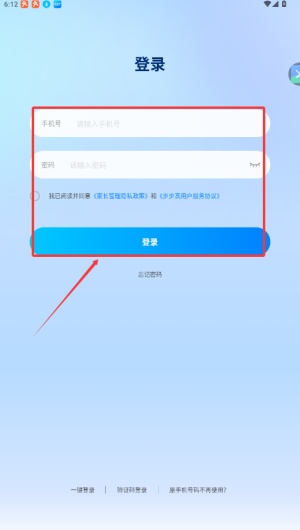 3、您也可选择密码登录方式,直接输入注册手机号及对应密码进行验证。