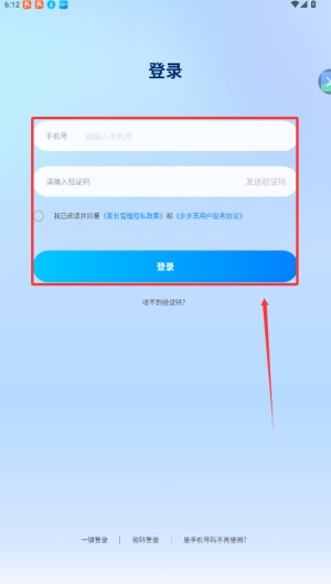 2、在登录页面选择验证码登录,输入手机号并获取短信验证码,填写后即可登录。