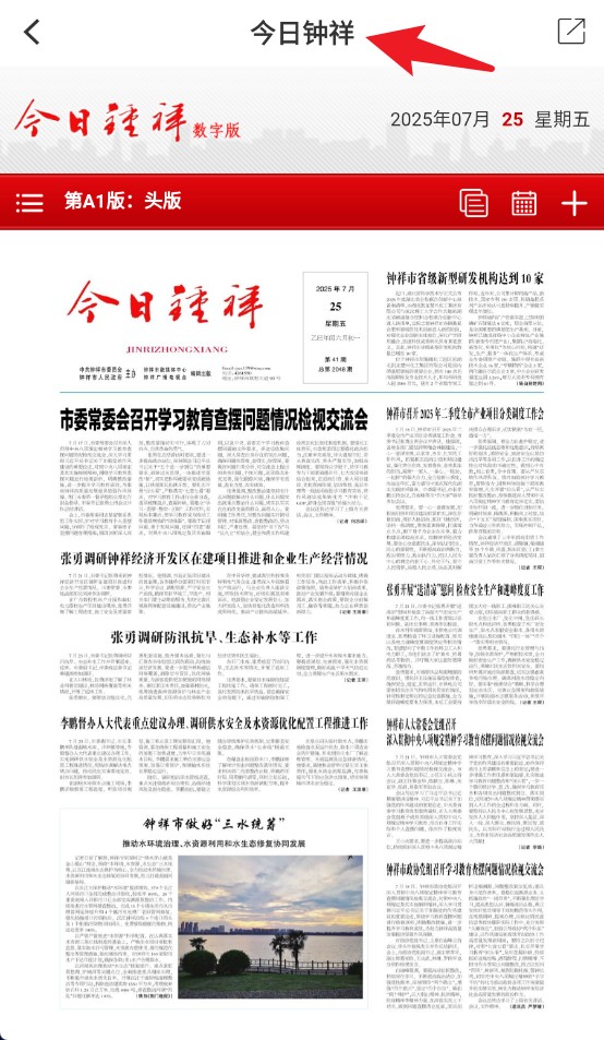 2、点击“今日钟祥”图标可查看电子报纸,浏览当日报纸头版内容及重点新闻信息。
