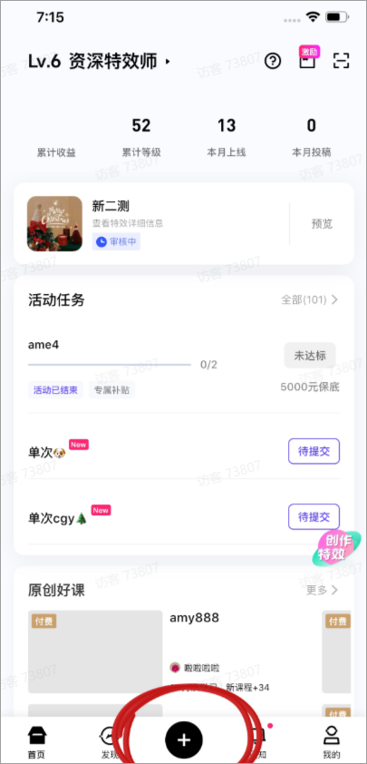 1、打开像塑APP,点击主页下方“+“图标,开始创作