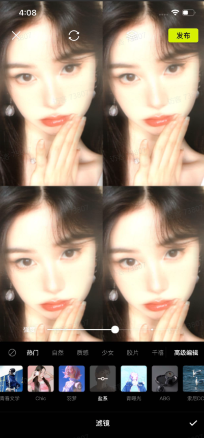 4、根据特效风格添加合适的滤镜并适当调整滤镜浓度。