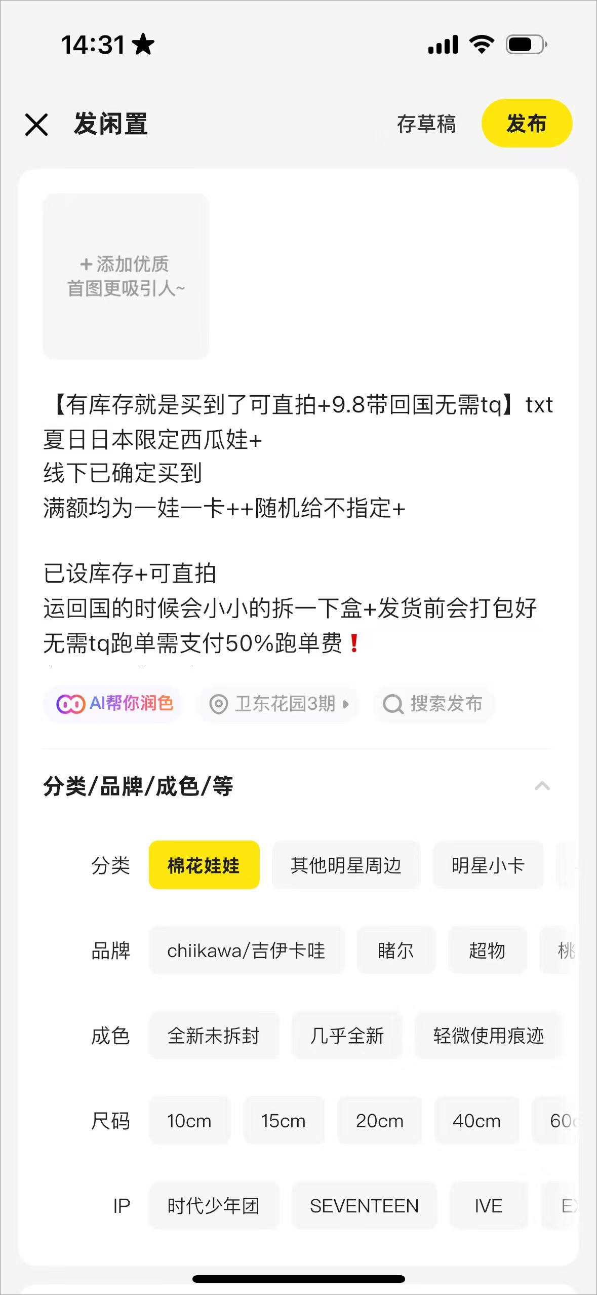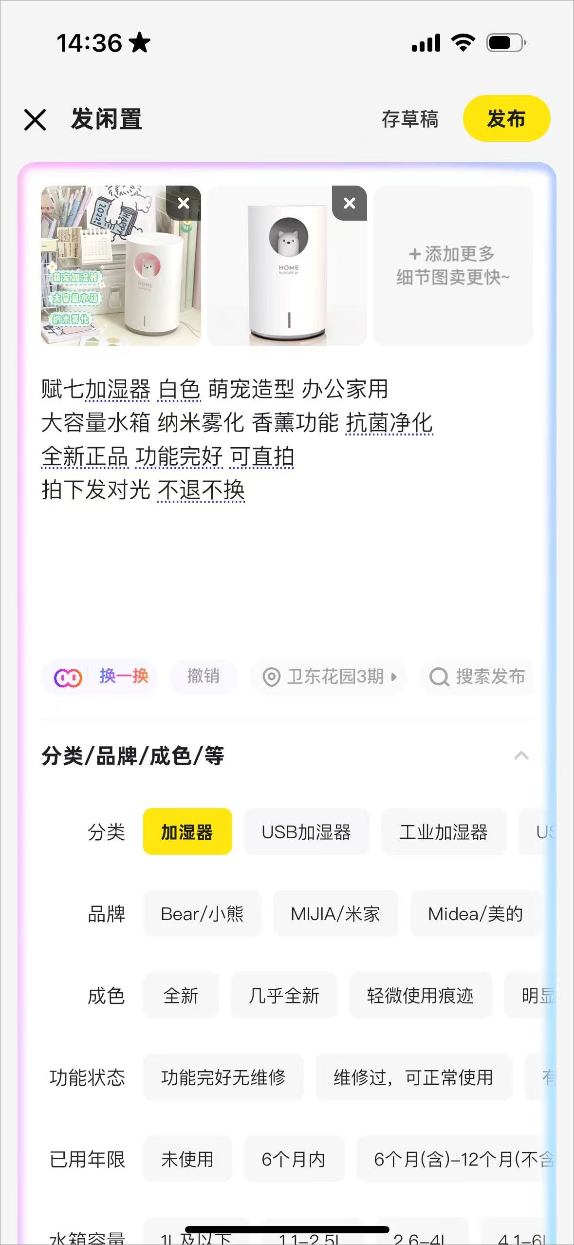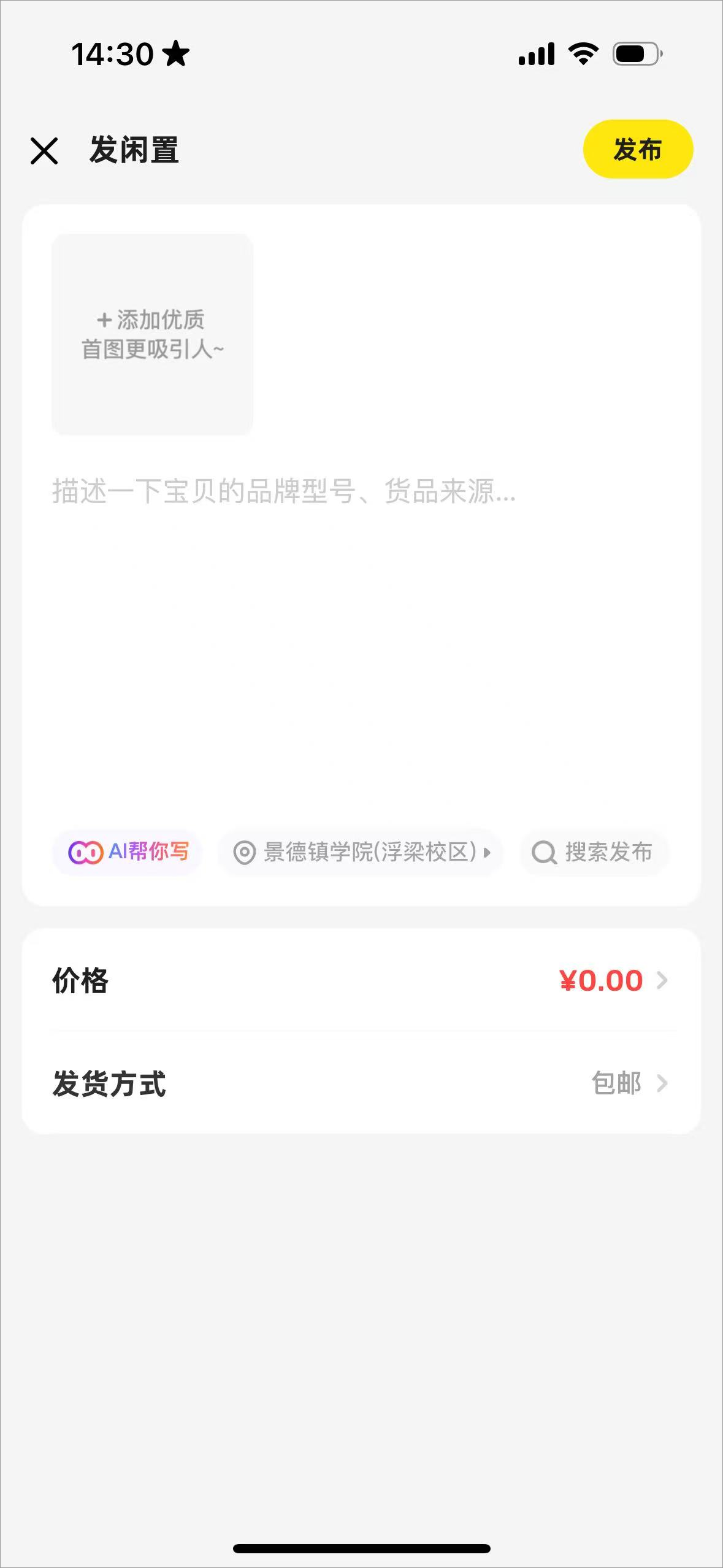 3、可以上传图片编辑物品信息等,设定价格和邮费后点击发布即可