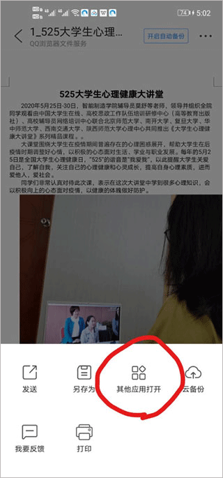 5、点击省略号后会出现以下情景,选择用其他应用打开。