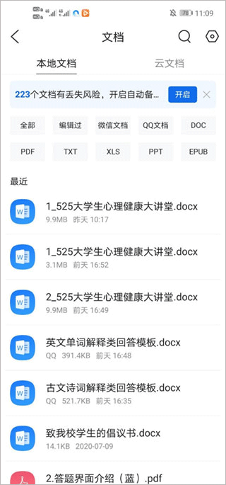 3、点击了文档后进入文档区域,在这里找到你需要编辑的文件然后打开。