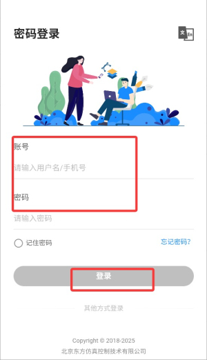 3、输入已注册的手机号码与对应密码信息,点击登录按钮完成账户验证。