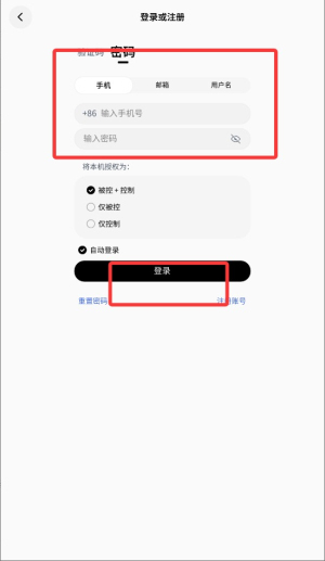 4、输入已注册的手机号码及对应密码,验证通过后即可成功登录控制平台。