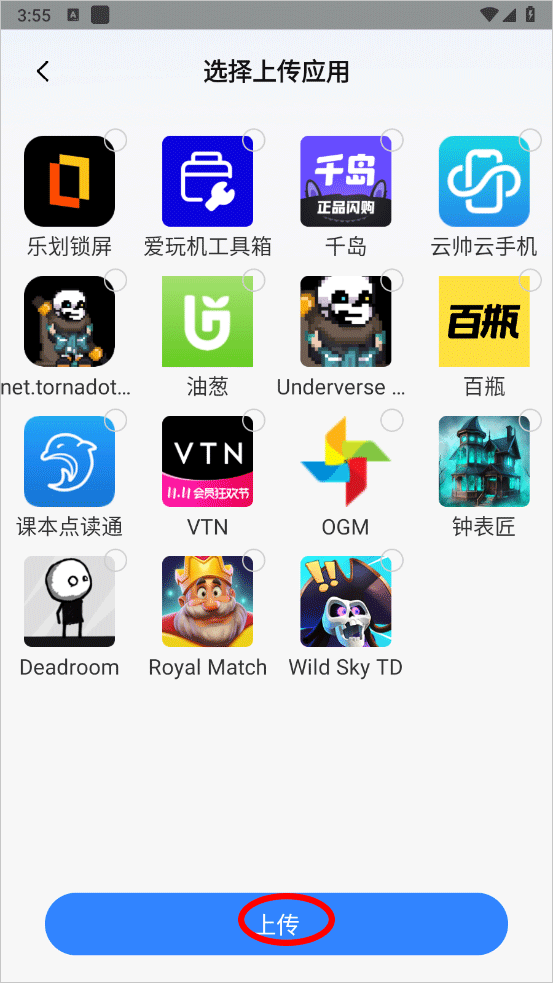 5、就会挑战弹出本地手机上有的应用点击上传即可