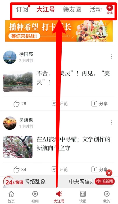 3、大江号互动:查看网友发布的图文内容,参与评论互动。
