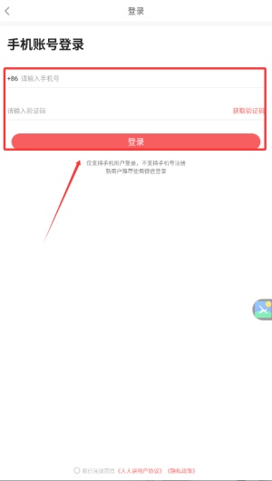 3、若选用短信登录,输入手机号并获取验证码,填写后即可完成登录。