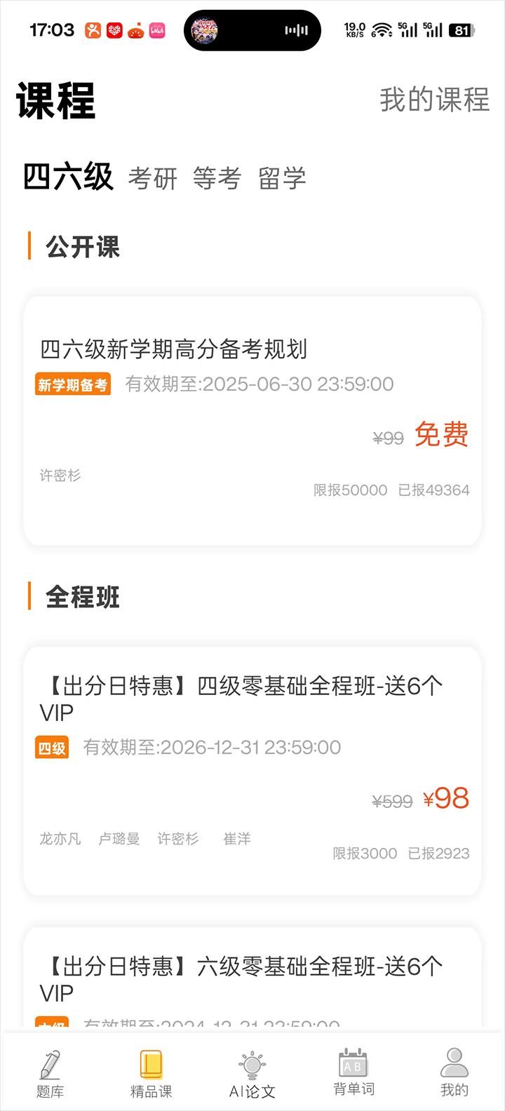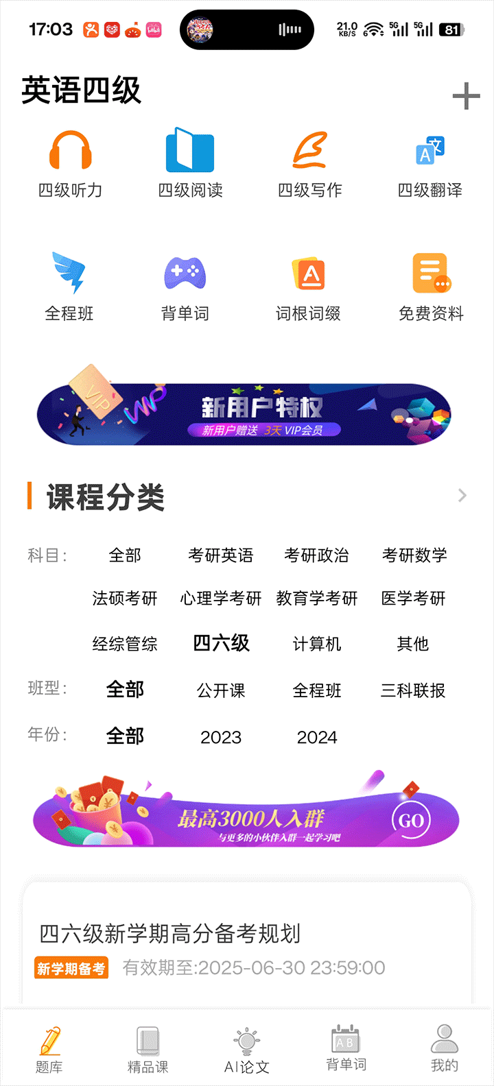 4、产品涵盖英语四级,六级、考研、考研英语,考研政治,考研数学,心理学考研,教育学考研。轻轻松松掌握更多的学习资源,就能够快速的通过等级考试。