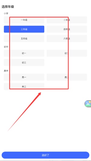 1、首次启动时,根据提示选择您当前所处的学习年级,以进入软件主界面。