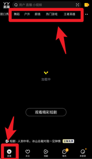 2、进入直播版块后,提供舞蹈、户外、颜值、热门游戏等分类,点击即可进入不同主题的直播间,快速找到自己感兴趣的内容。