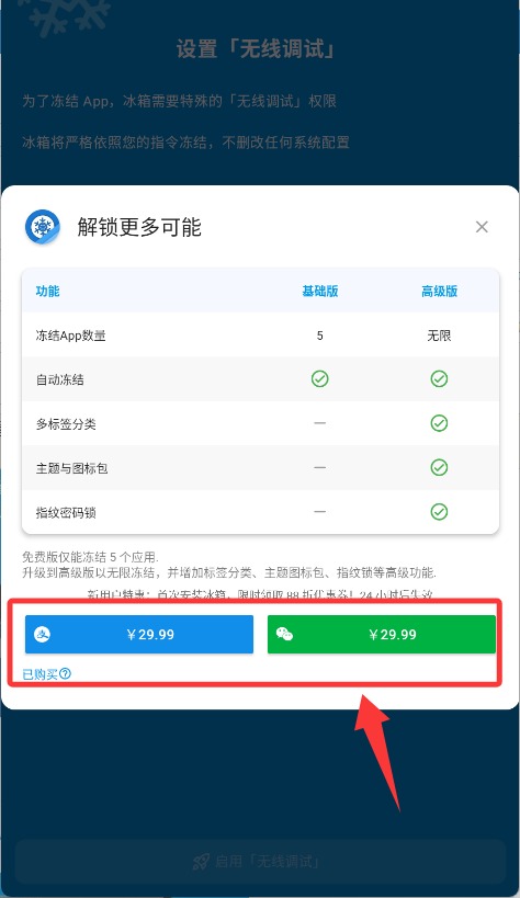没有 Root的设备,请按照应用说明中的步骤,连接电脑使用 adb 激活一次,即可永久使用,只要不卸载冰箱,重启刷机都可以用。