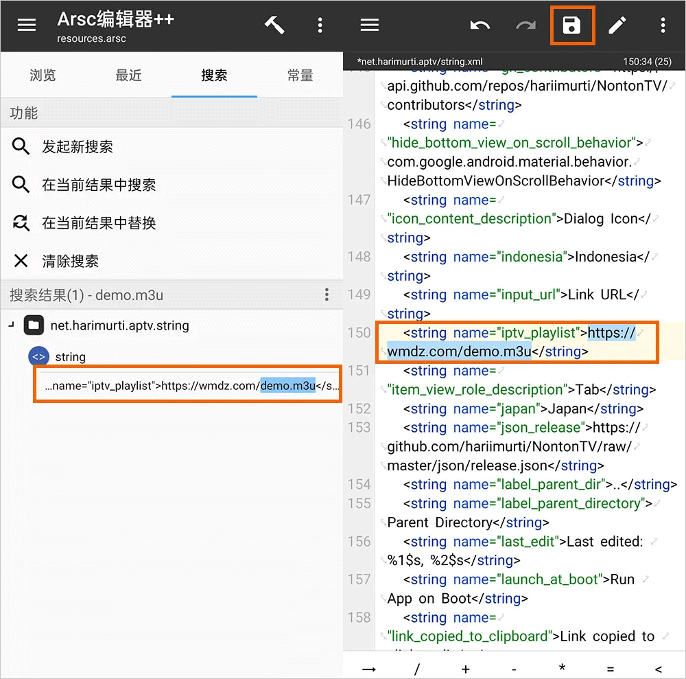 3、将搜索结果中的网址内容替换为自己需要使用的.m3u资源网址: