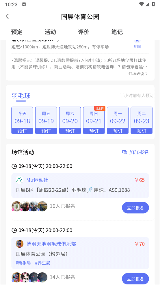 3、进入详情页面可以选择直接预订,还可以直接报名