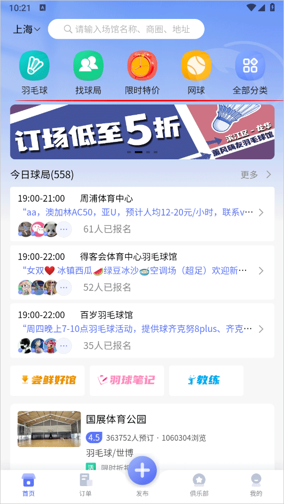 趣运动app是一款专为健身爱好者打造的运动记录软件,其提供在线预定场地的服务功能,涵盖全国大部分城市地区的体育场馆,有丰富的运动项目可供用户选择,如:羽毛球、乒乓球、游泳馆、排球、篮球等各种各样的类型应有尽有,可以满足用户的多样化运动健身需求,还会根据用户的定位为其精准推送附近的场馆,使用起来十分的方便,感兴趣的用户快来发布运动计划,约身边的小伙伴们一起锻炼挥洒汗水吧!