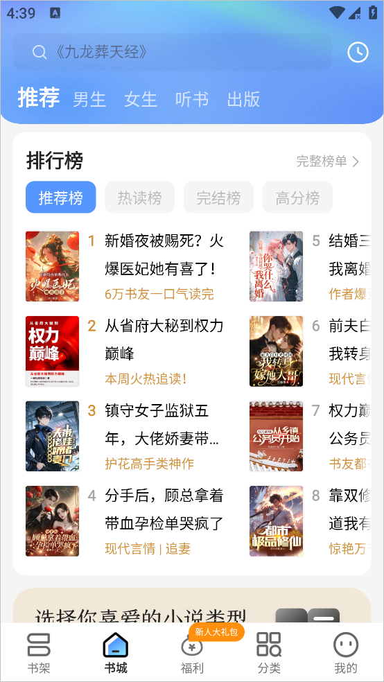 根据你的阅读爱好,个性化推荐,优质书单,书城精细化推荐,总有一款打动你!