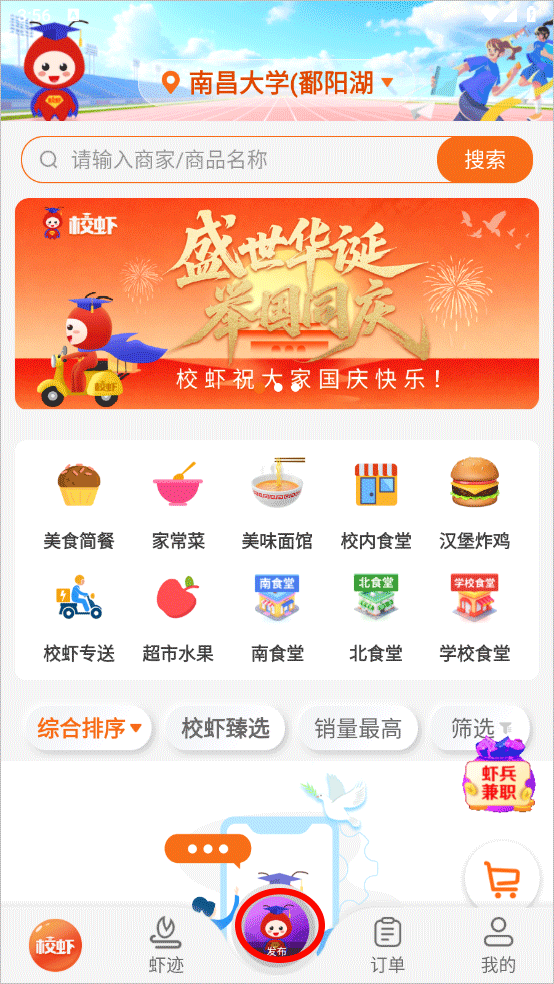 体验校虾新的高校校园配送服务,让我们的高校学子更好、更快的收到自己的外卖订单。