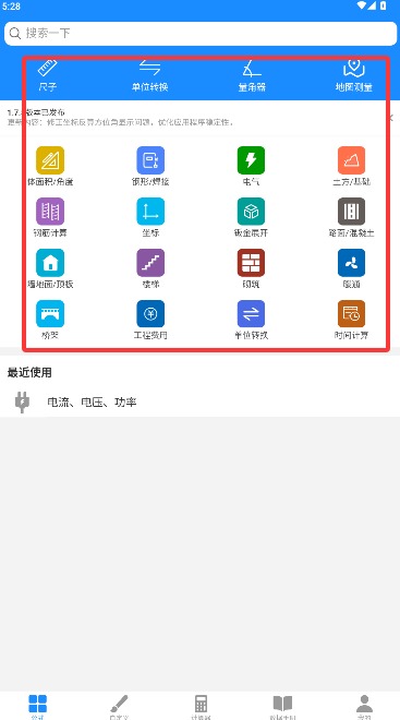 4、进入应用首页后可使用体积面积计算、焊接参数、电气设计及土方测算等功能。