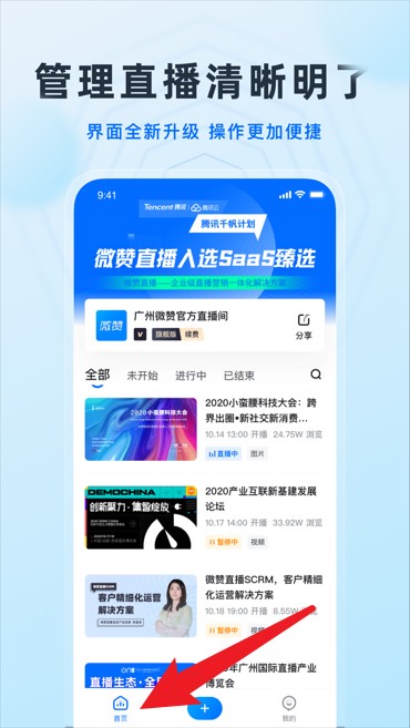 2、登录成功进入首页,界面清晰明了,直播状态分类明确,方便快速管理各类直播。