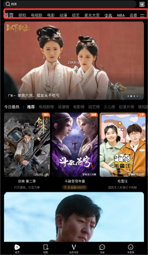 2、进入应用后,您可以在顶部导航栏或首页推荐区浏览并点击感兴趣的视频类型频道。