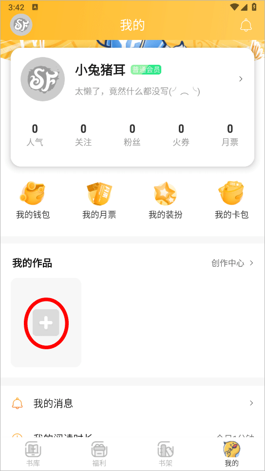 2、点击我的作品【+】图标进行创作