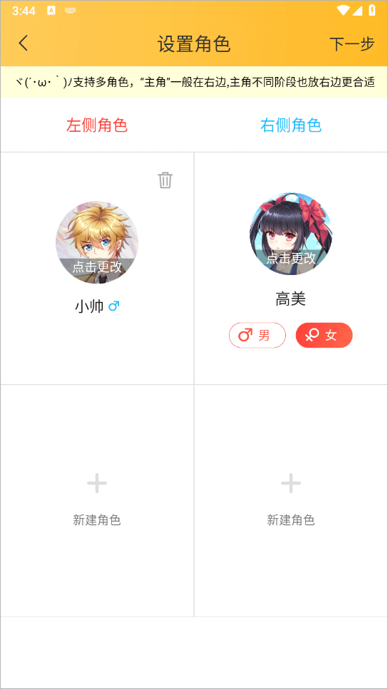 4、然后给作品设置角色