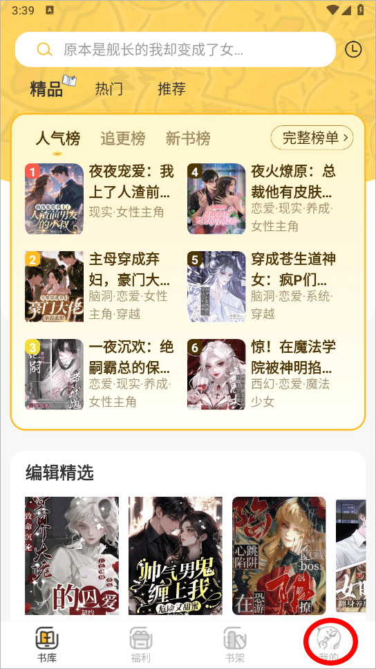 1、打开软件进入首页点击右下角我的