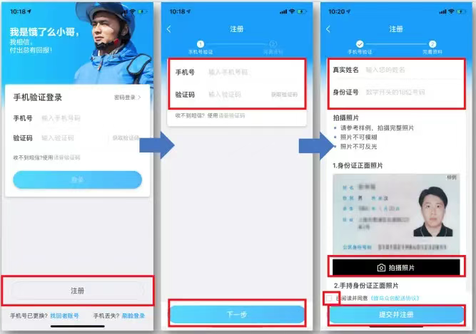 下载“蜂鸟众包APP”,进入登录页,选择下方“注册”。