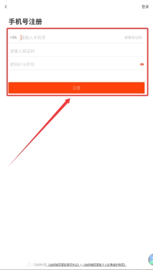 1. 打开 App 进入注册页面,输入手机号、验证码与密码后,勾选协议点击“注册”完成账户创建。