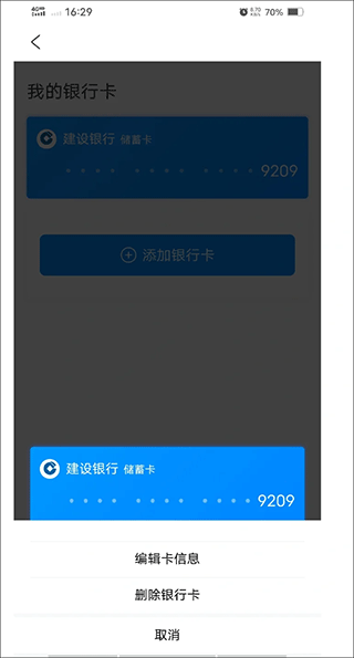 2、点击【银行卡】