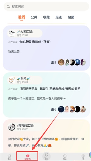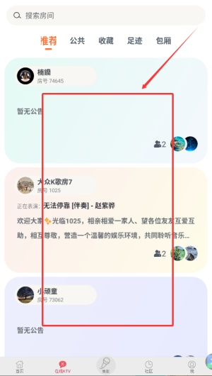 3、在房间列表中挑选一个公开房间,点击进入即可开始K歌。