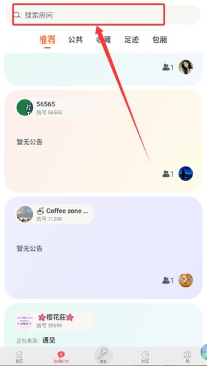 4、您也可通过搜索功能找到朋友创建的房间,邀请对方一同欢唱。