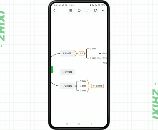 ① 添加概要:点击选中主题,点击下方操作栏中的「概要」按钮,即可对所选主题进行概要。