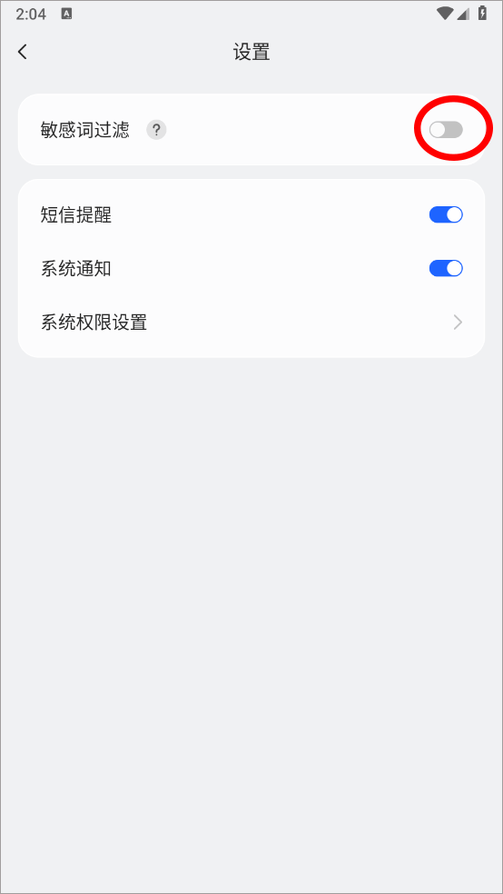3、开启敏感词过滤按钮即可