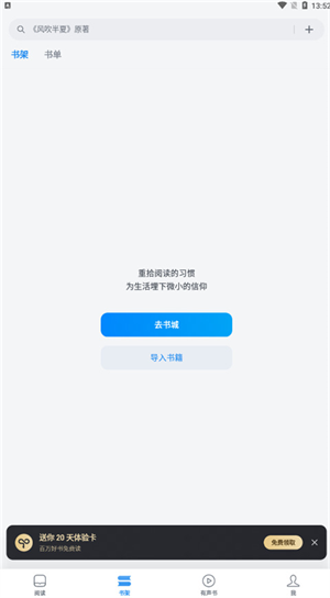 5、点击书架功能有着两种功能,分别是去书城以及导入书籍;